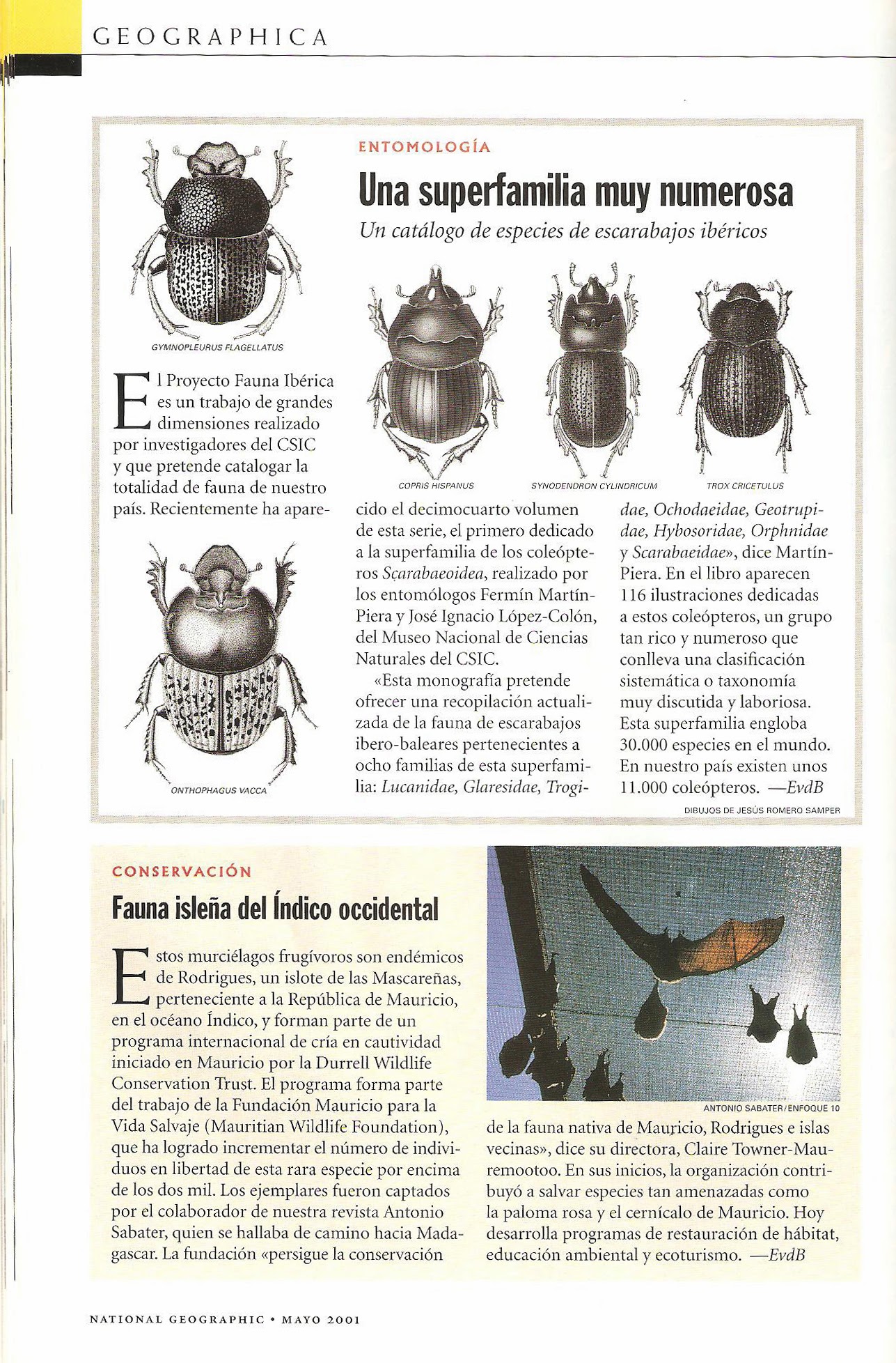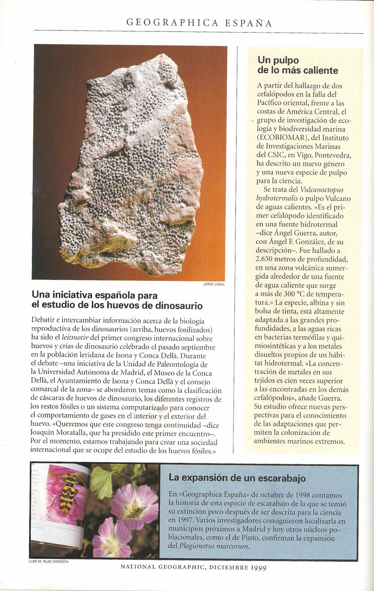 Páginas publicadas en la revista National Geographic sobre diversos trabajos llevados a cabo por el autor del blog junto a los doctores Pablo Bahillo de la Puebla y Fermín Martín Piera, el entomólogo navarro Jorge L. Agoiz Bustamante o con el equipo de investigadores extremeños compuesto por Ángel Sánchez García, Javier Pérez Gordillo, Elena Mª Cabrera Fernández, Miguel Ángel Romo Bedate, Gloria Cortázar Hurtado y Samuel Pla Benítez.