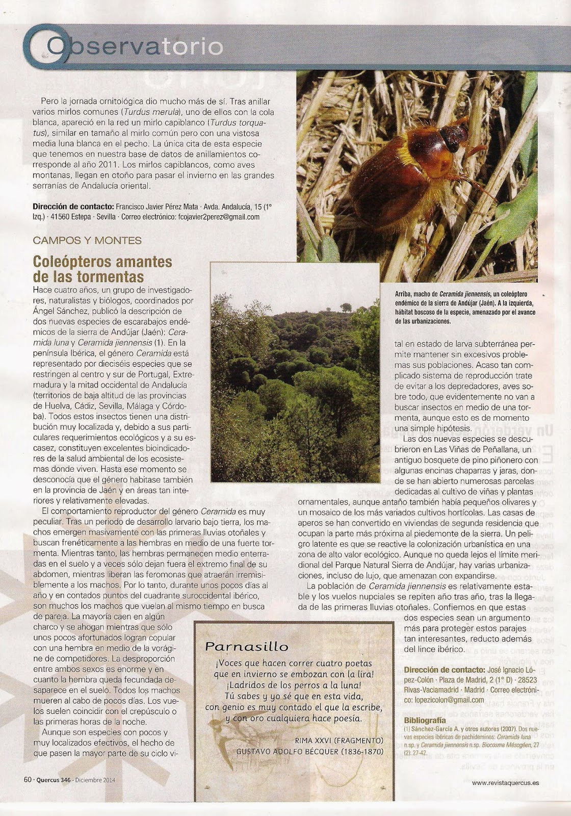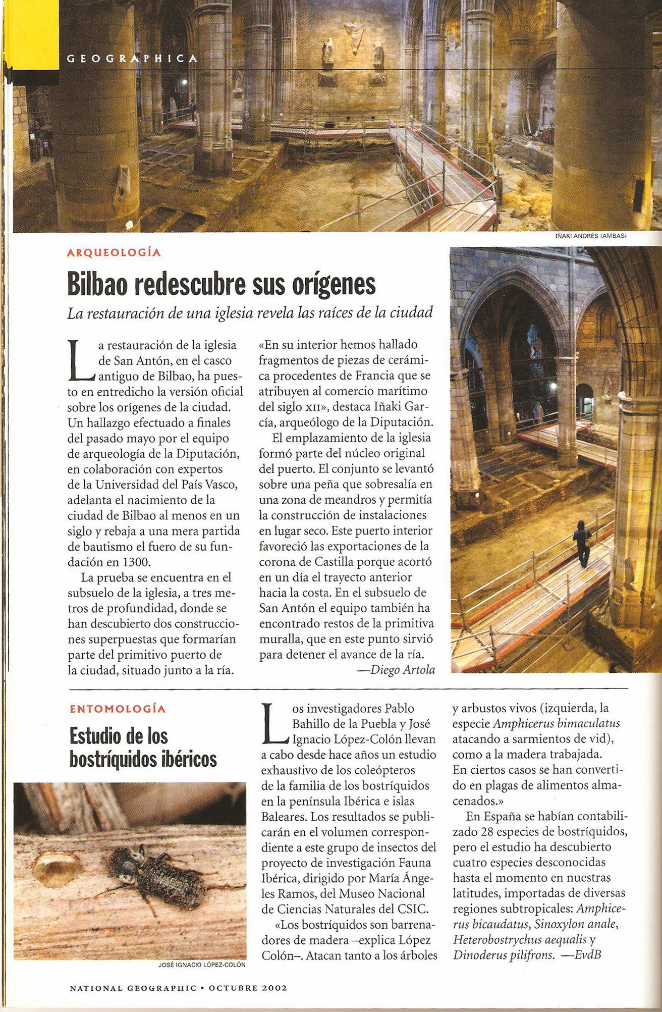 Páginas publicadas en la revista National Geographic sobre diversos trabajos llevados a cabo por el autor del blog junto a los doctores Pablo Bahillo de la Puebla y Fermín Martín Piera, el entomólogo navarro Jorge L. Agoiz Bustamante o con el equipo de investigadores extremeños compuesto por Ángel Sánchez García, Javier Pérez Gordillo, Elena Mª Cabrera Fernández, Miguel Ángel Romo Bedate, Gloria Cortázar Hurtado y Samuel Pla Benítez.